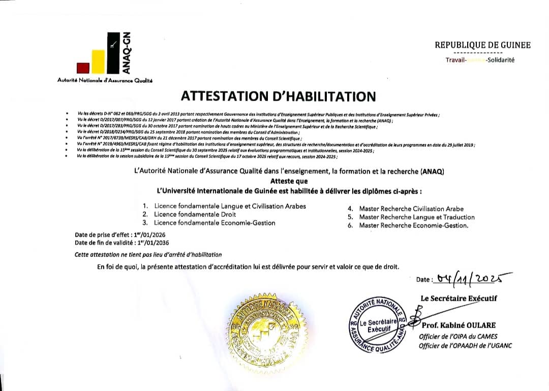 جامعة غينيا العالمية تنال اعتماد برامجها الأكاديمية رسميًا وتعزّز موقعها بين أفضل الجامعات الخاصة في البلاد